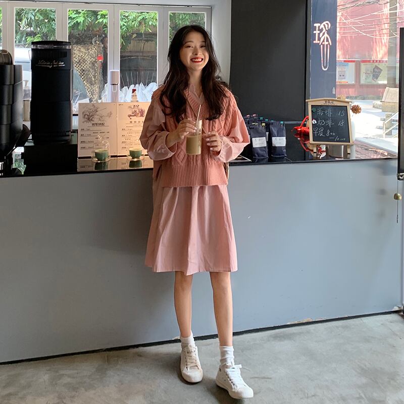 2021年初春の新しい小さな純粋で甘いフランスの初恋ピンクシャツドレスツーピーススーツ 大人ガーリー スウィート キュート カジュアル スプリング 春物 ピュア TB2 TB233100544025