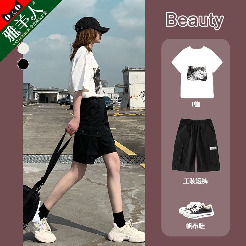 ワークウェアショーツレディースパンツ2020新夏薄切片ハイストリートスタイルルーズハイウエストスポーツショート5点ミッドパンツ ハイウェスト サマー 夏物 ブルマー TM2-5 TM2-568673497866