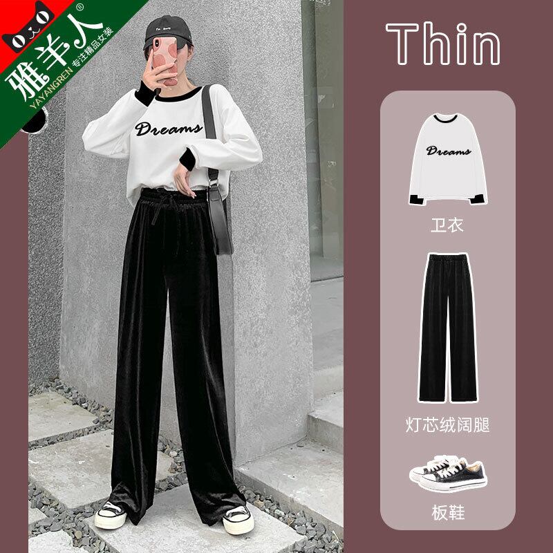 コーデュロイワイドレッグパンツレディース2020新しいハイウエストスリムブラックルーズストレートパンツ春、秋、冬 ハイウェスト スプリング 春物 オータム 秋物 ウィンター 冬物 TM2-5 TM2-544984671407