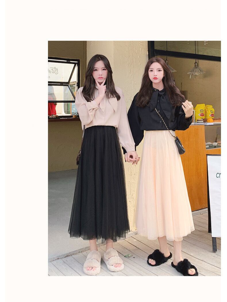 ネットガーゼスカート女性春夏薄手黒ミドル丈学生超妖精妖精ふくらんでいるハーフ丈スカート ブラック スプリング 春物 サマー 夏物 TM2-5 TM2-571393008120