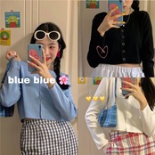 2021年初春新作bmニットカーディガンショートトップ女性デザインセンスニッチミルクブルールーズボトミングTシャツ スプリング 春物 TB2 TB26549353121