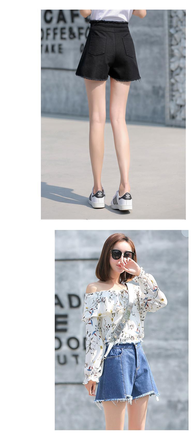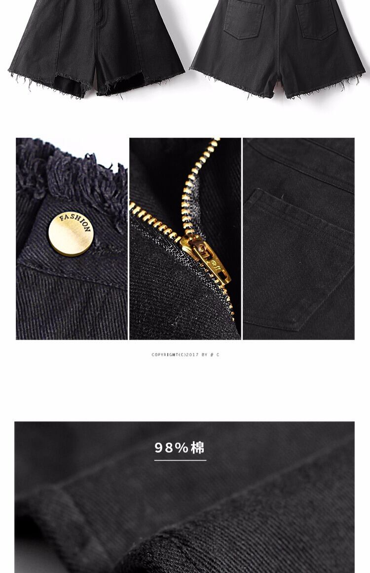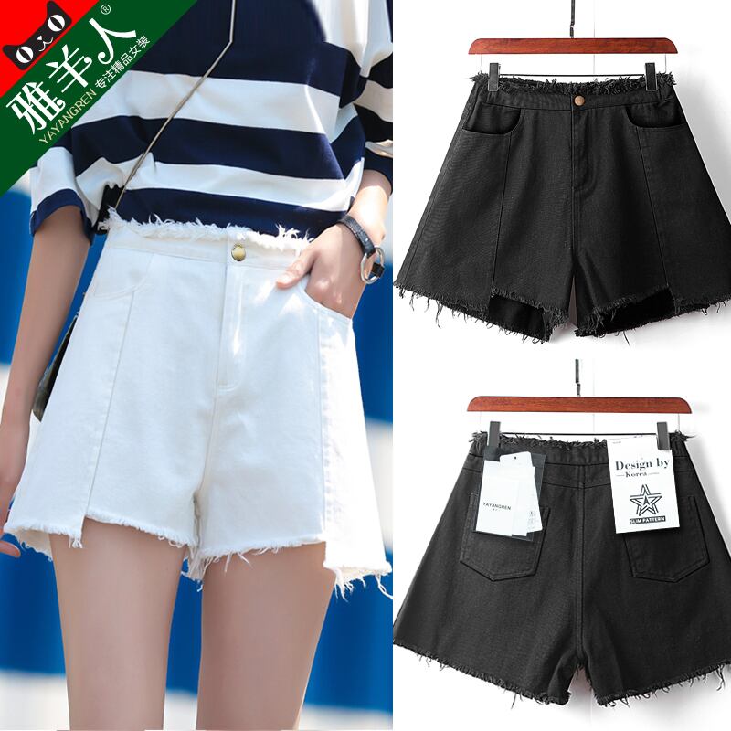 生デニムショーツ女性の夏の薄片ルーズで薄い黒の超ハイウエストA字型の4点白ワイドレッグインタイド ハイウェスト ホワイト ブラック サマー 夏物 ブルマー TM2-5 TM2-543813318186