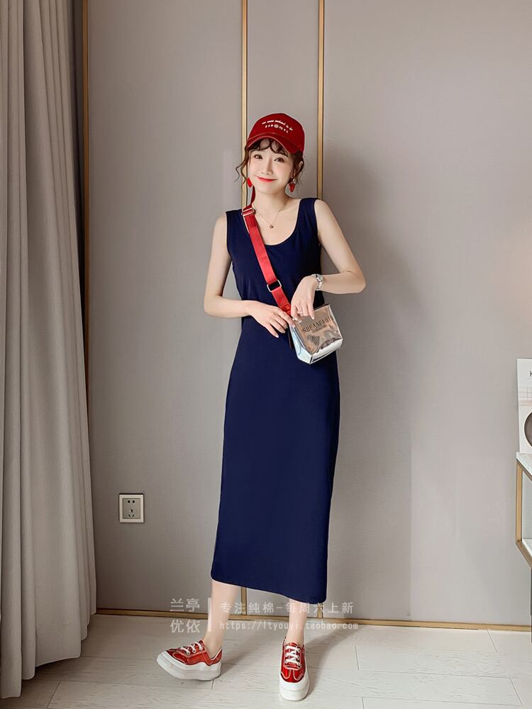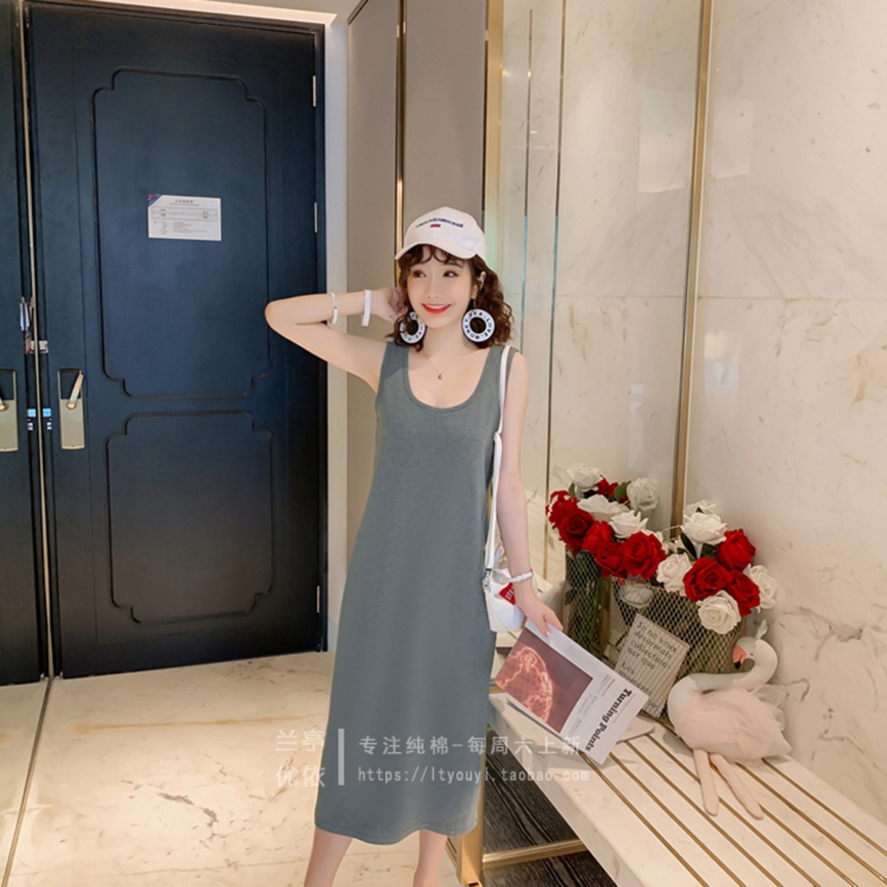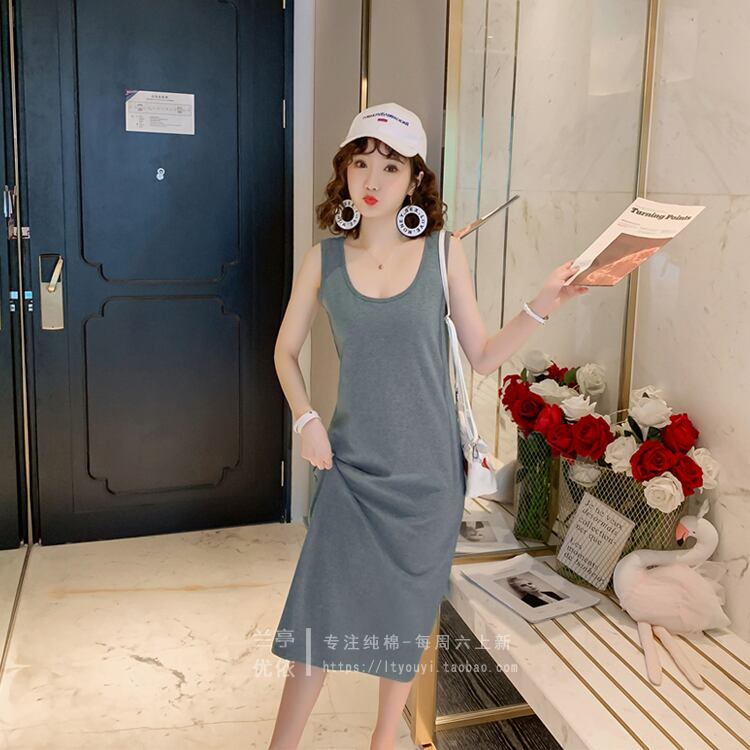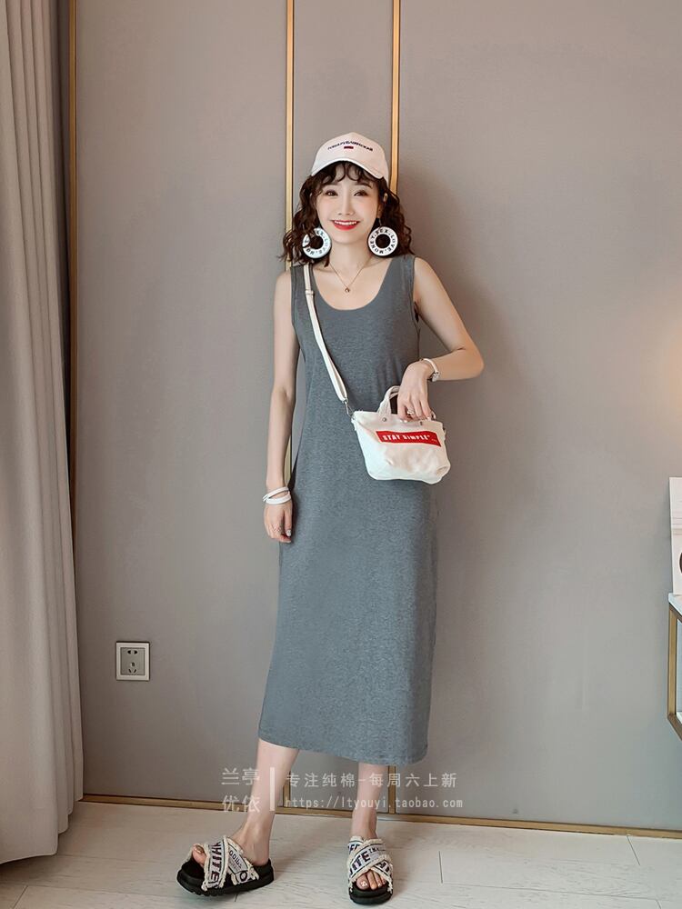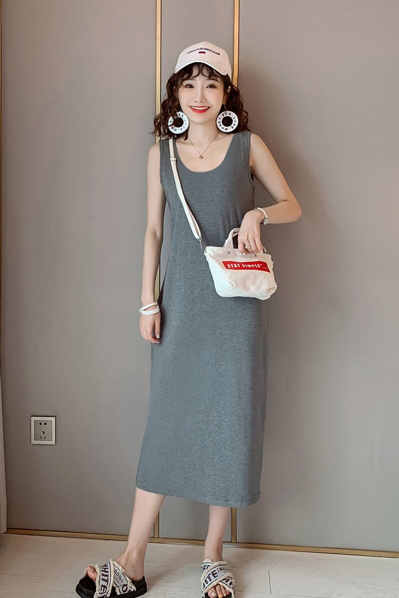 夏のシンプルなベストレディースミドル丈オーバーザニーコットンTシャツスカートプラスサイズノースリーブトップボトミングシャツ春 大きめサイズ スプリング 春物 サマー 夏物 TB2-16 TB2-1675321724998