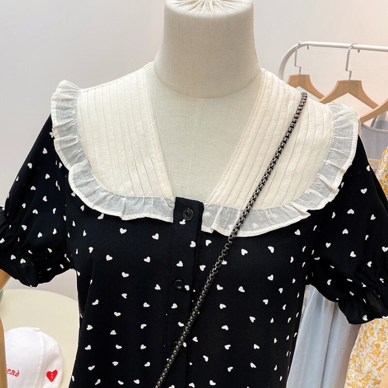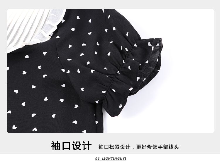 2021年夏の新製品ウエストウエストブラックのマイクロファットシフォンパフスリーブドレスは薄くて大きいサイズの水玉ボトミングスカートでした 大きめサイズ サマー 夏物 TB2-16 TB2-1689364113972