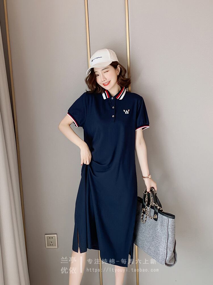 2021年夏プラスサイズスリム半袖Tシャツスカート女性長い膝上怠惰なPOLO襟トップボトミングシャツ春の潮 ロング 大きめサイズ スプリング 春物 サマー 夏物 TB2-16 TB2-1653419276602