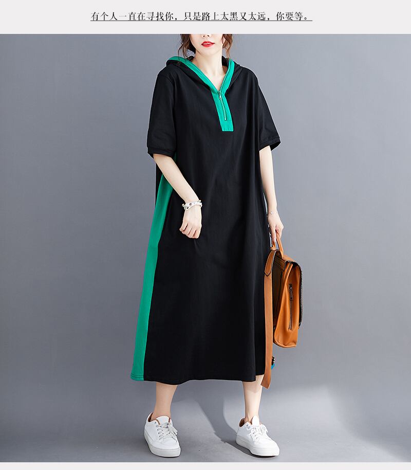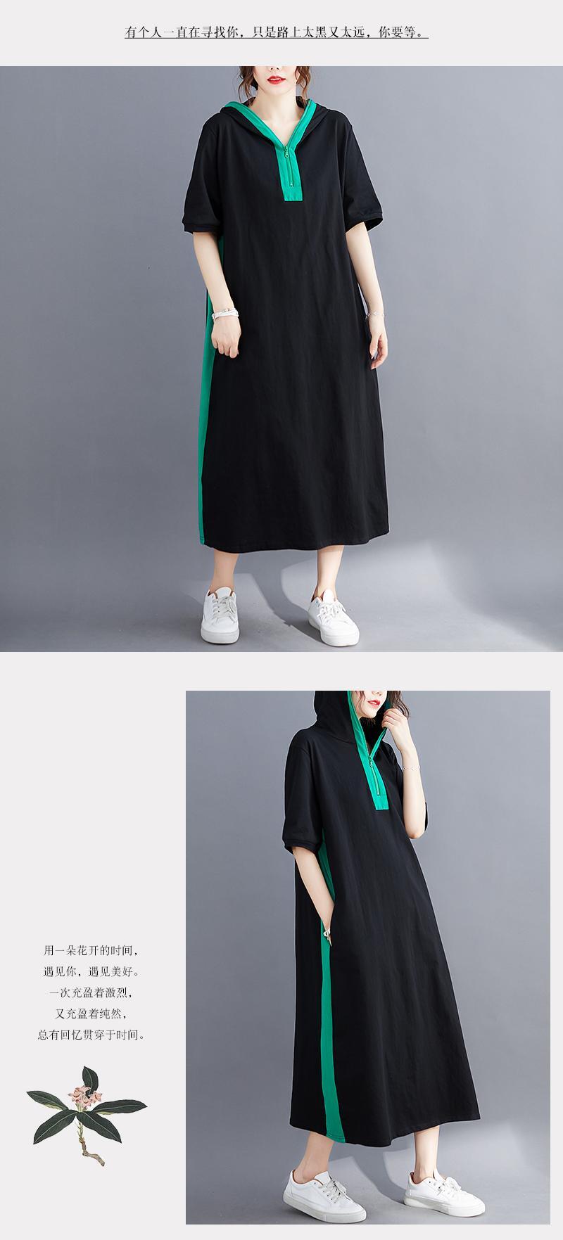 プラスサイズの女性用マイクロファットドレス2020新しい夏のファットmmコントラストステッチフード付きセータードレス膝上ロングスカート 大きめサイズ サマー 夏物 TB2-8 TB2-845382748591