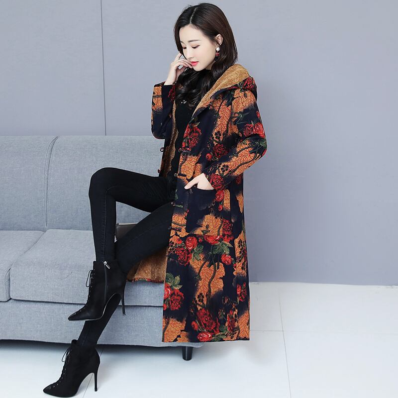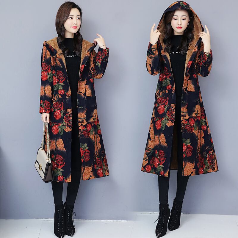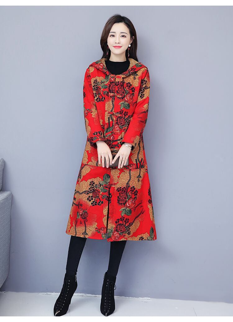 レディースコットンとリネンのコートコート秋冬新スタイルルーズラージサイズビッグフラワースリミングプラス膝上にベルベットの厚みを増すミドル丈ウインドブレーカー 大きめサイズ ウィンター 冬物 フラワーデザイン TB2-12 TB2-1258973385240