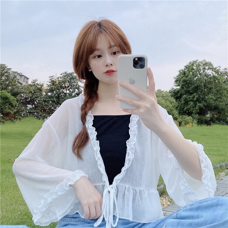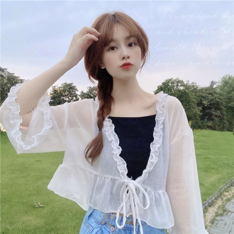 2021年夏新バージョンルーズで薄い木製の耳トランペットスリーブレースアップシフォンシャツレディースブラウス日焼け止めシャツ サマー 夏物 TB2-6 TB2-655068665252
