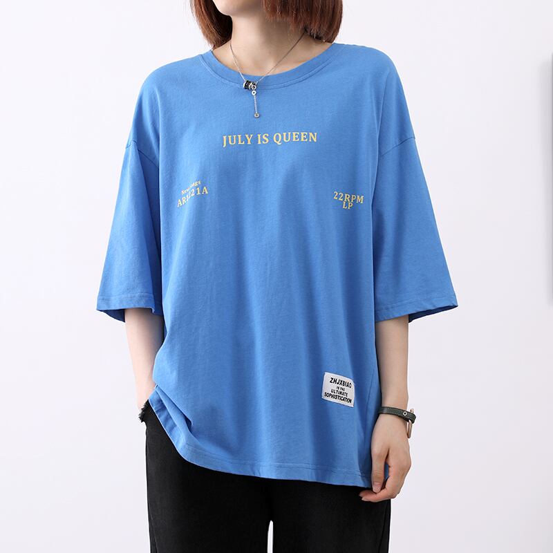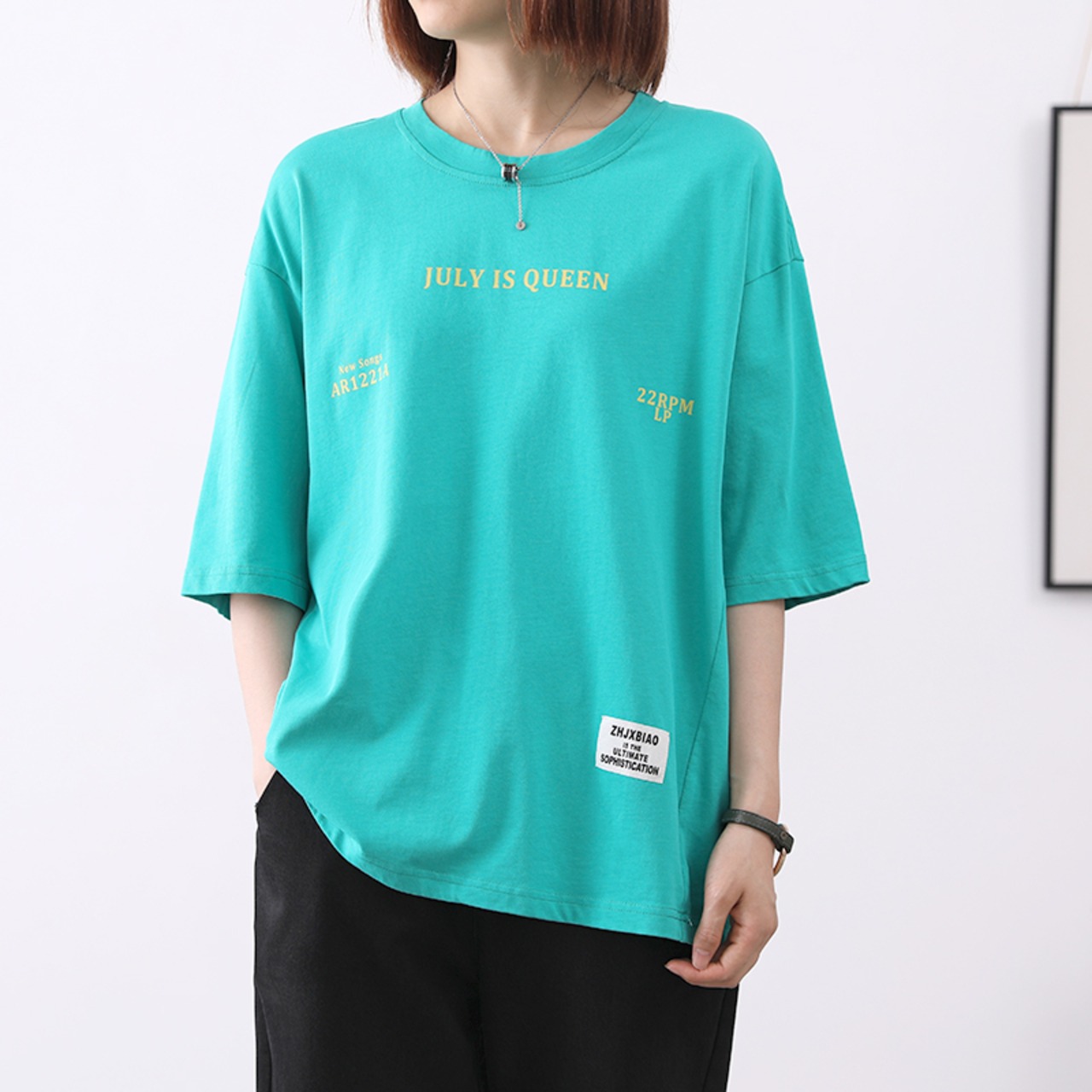 コットン半袖Tシャツレディースサマーニュースタイルラウンドネックルーズラージサイズハーフスリーブシャツプリントミドル丈ボトミングシャツタイド 大きめサイズ 夏物 Oネック TB2-9 TB2-939538846672