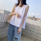 スタイルピュアコットンスポーツベストレディースルーズラージサイズファットMMノースリーブホワイトスリムスリングベースサマーウェア 大きめサイズ 夏物 TB2-6 TB2-618561056113