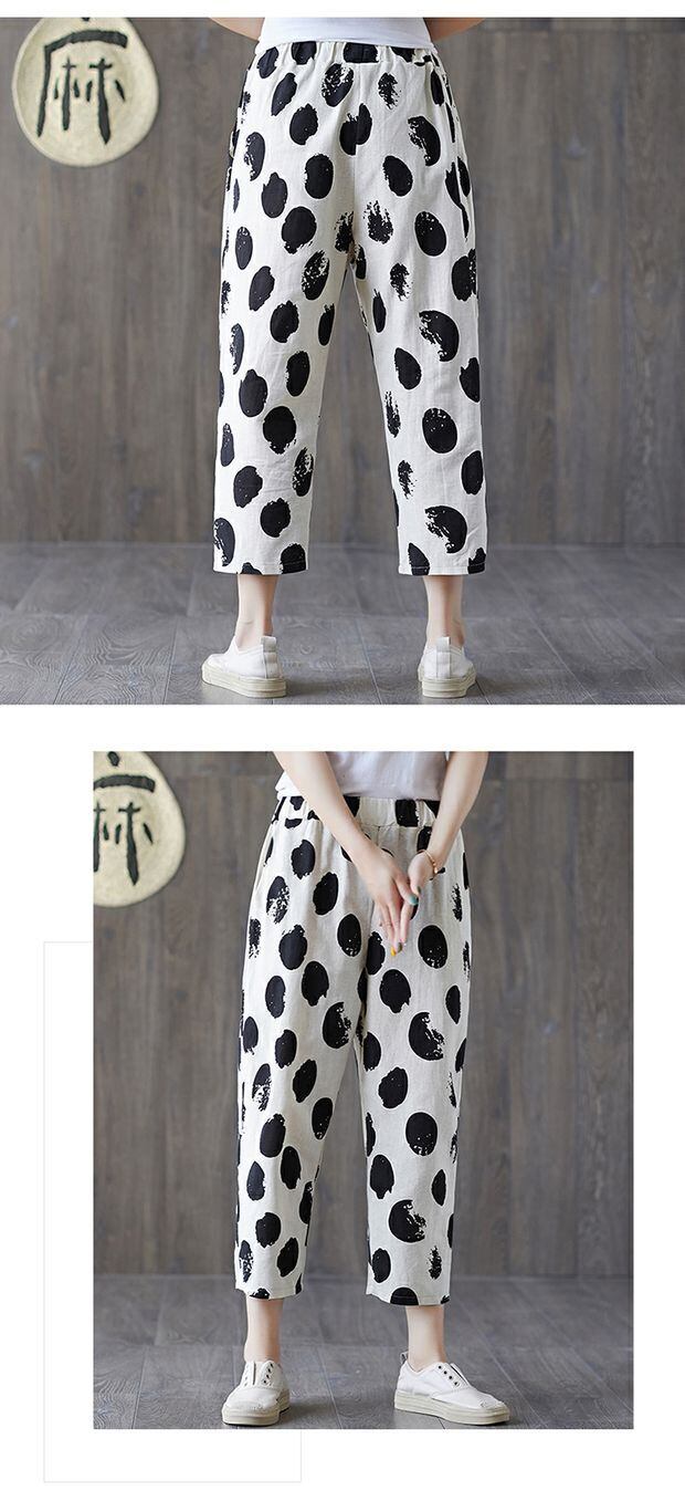 大きいサイズの女性の文学的なレトロなハーレムパンツ2019新しい女性のパンツは古いルーズコットンとリネンプリントの9ポイントパンツの女性を作ります 大きめサイズ TB2-11 TB2-1129461018207