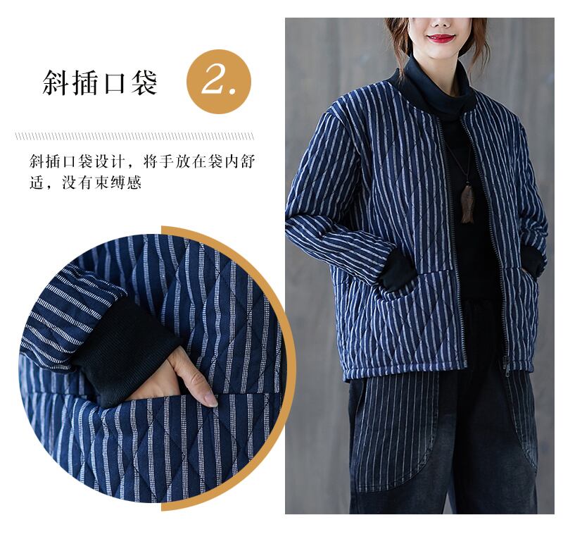 秋冬新作文芸ファン野球衿薄ストライプ厚手のコットンコートレディースルースキルトストライプ長袖コットンコート ロング オータム 秋物 ウィンター 冬物 TB2-12 TB2-1286044731665