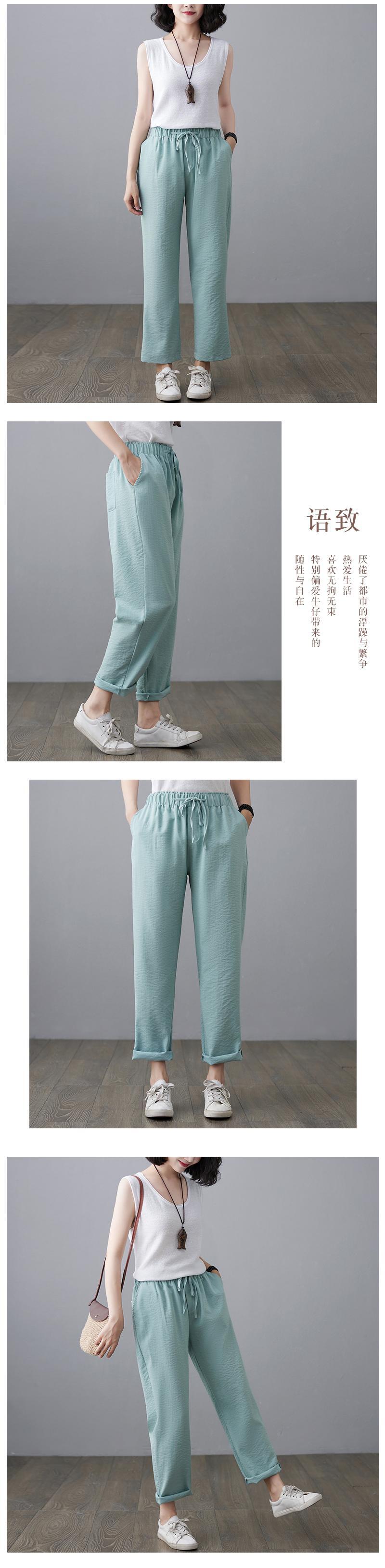 2021年夏の綿とリネンのハーレムパンツ女性の薄い伸縮性のあるハイウエストカジュアルパンツルーズで薄いニンジンパンツリネンパンツ ハイウェスト コットン エラスティック サマー 夏物 TB2-12 TB2-1265775975356