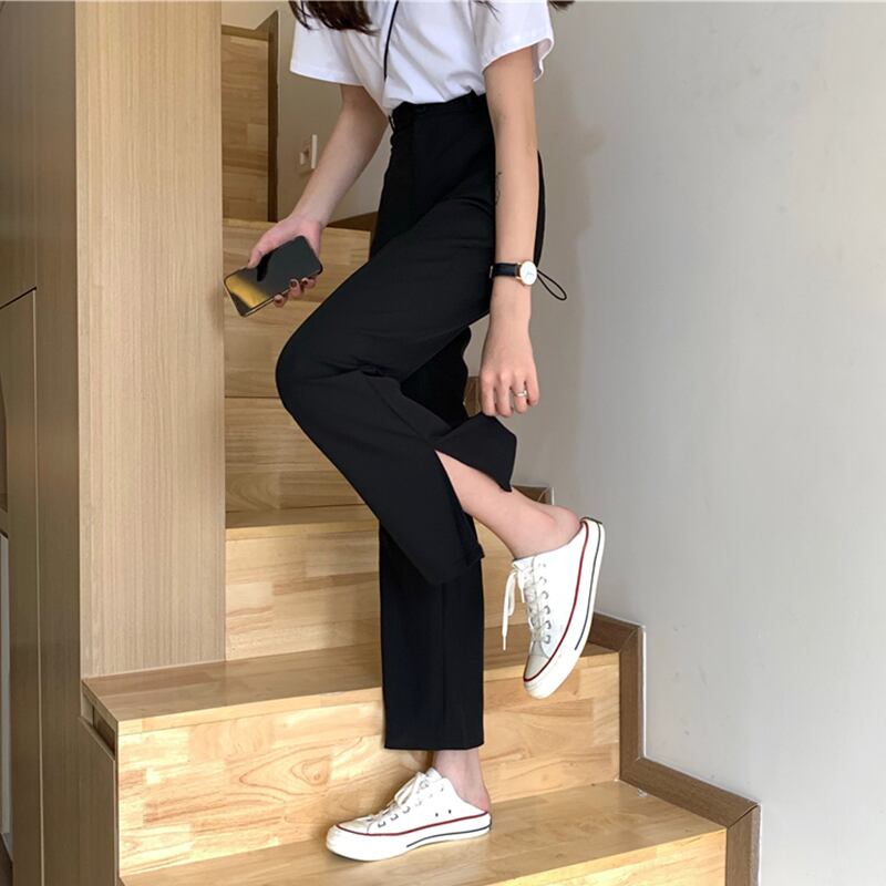 ワイドレッグパンツレディースハイウエストドレープパンツレディース2020ニューオーバーオールレディーススモールワイドレッグパンツ9点パンツブラック TB2 TB259323421103