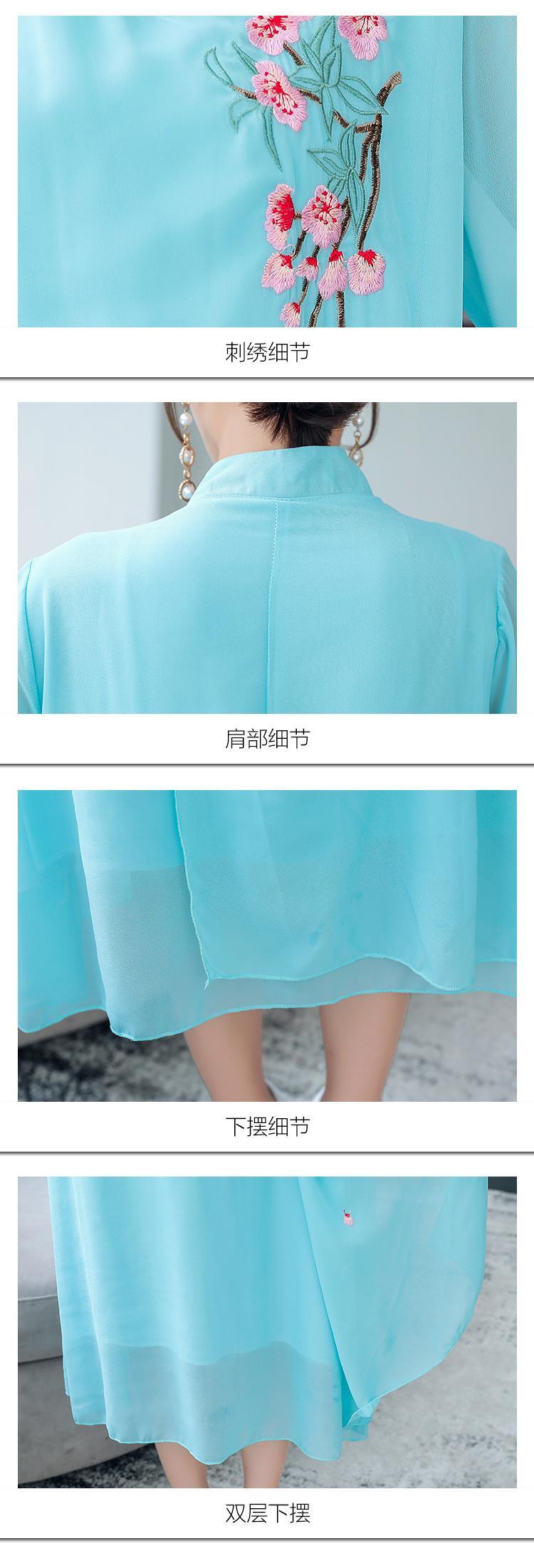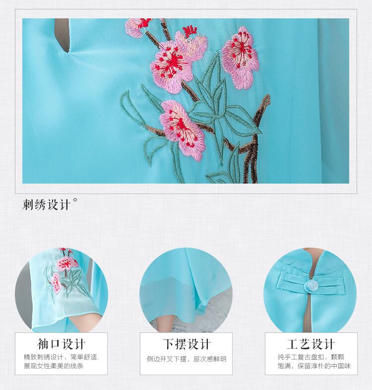 2021年夏のチャイナスタイルのファッション刺繍3/4スリーブシフォンドレス女性の毎日のレトロな改良されたチャイナドレス レッド サマー 夏物 TB2-12 TB2-1275856214509