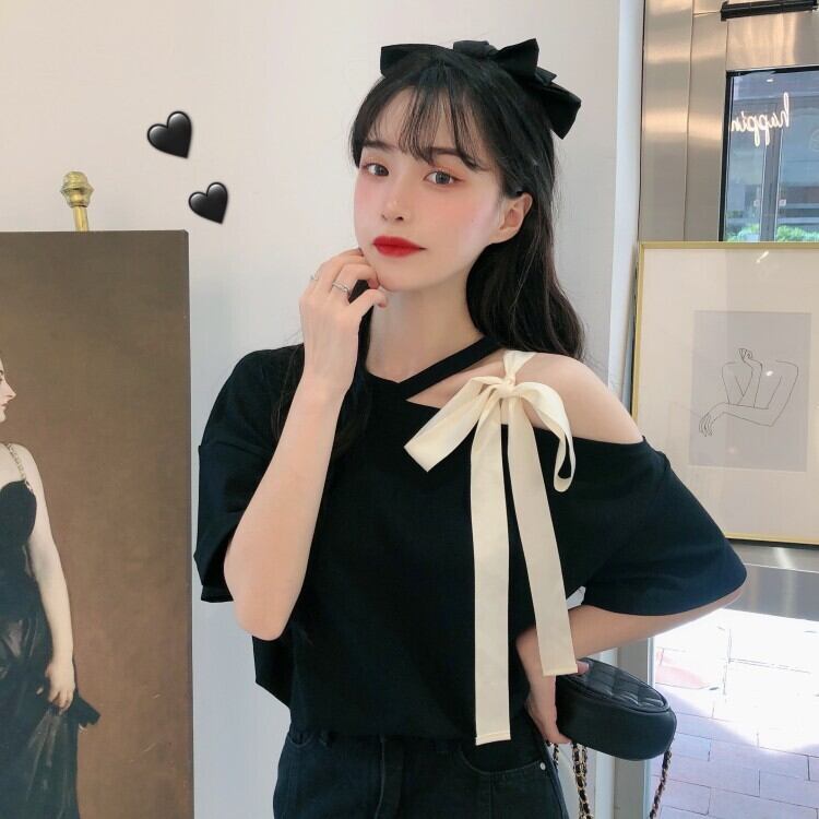 ネットレッドオーシャンオフショルダートップ女性デザインセンスニッチウェアルーズで薄いbm風半袖Tシャツ夏 サマー 夏物 TB2 TB299661340733