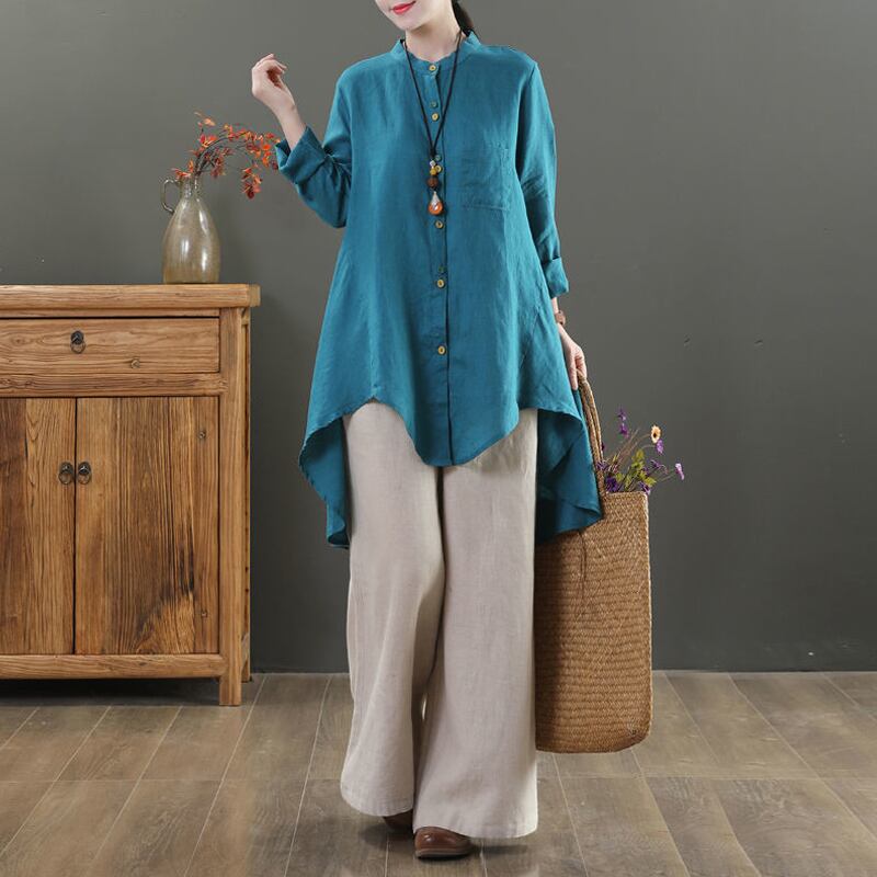 文学カラーボタンコットン&リネンミドル丈シャツ女性春夏ルーズイレギュラーAラインカーディガン長袖シャツ ロング スプリング 春物 サマー 夏物 TB2-12 TB2-1232271238812
