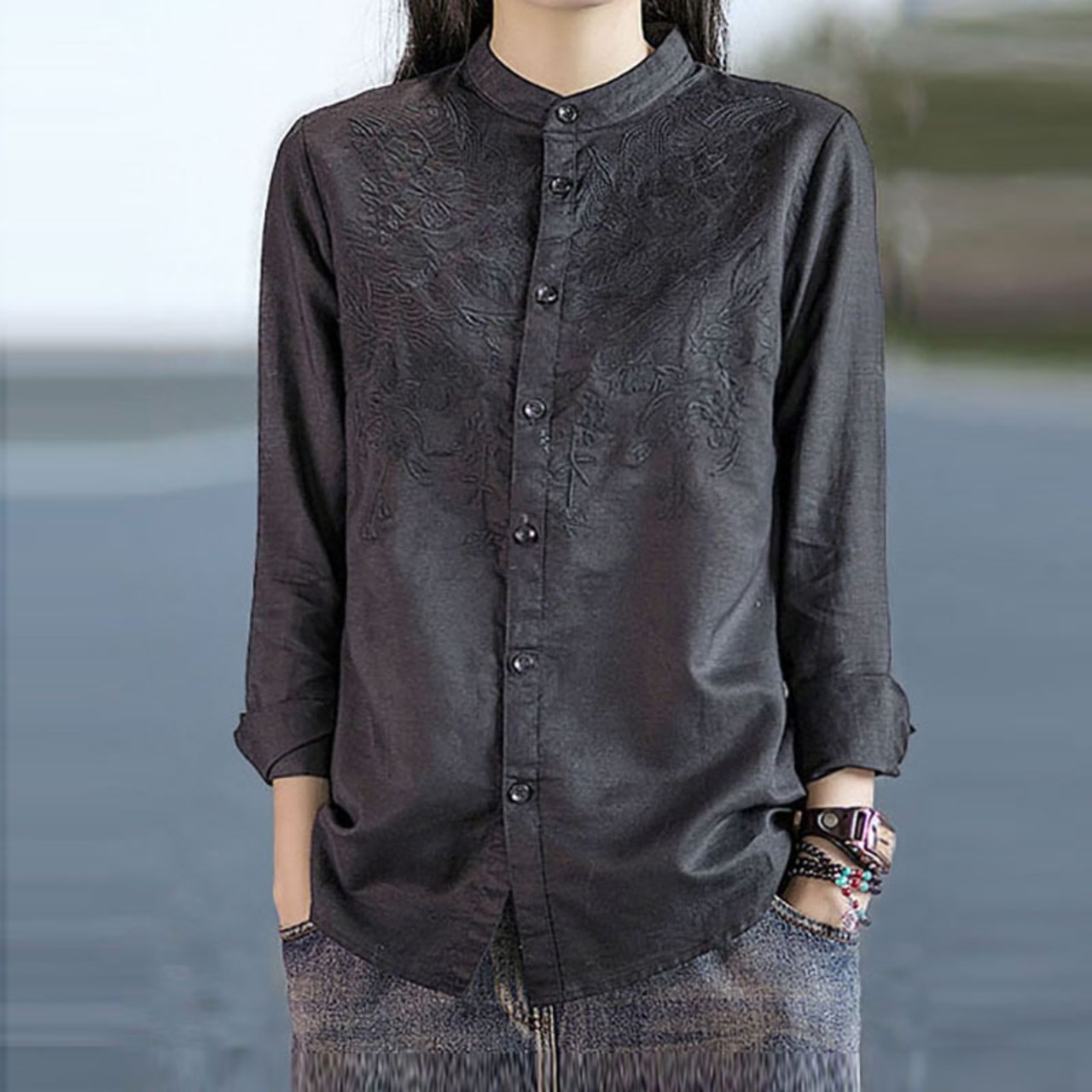 2021年の文芸的で芸術的なレトロな綿とリネンのブラウスの女性の春と秋の長袖のルーズカジュアルなリネンシャツの刺繍入りチャイニーズシャツ ロング レッド コットン スプリング 春物 オータム 秋物 TB2-11 TB2-1148250078863