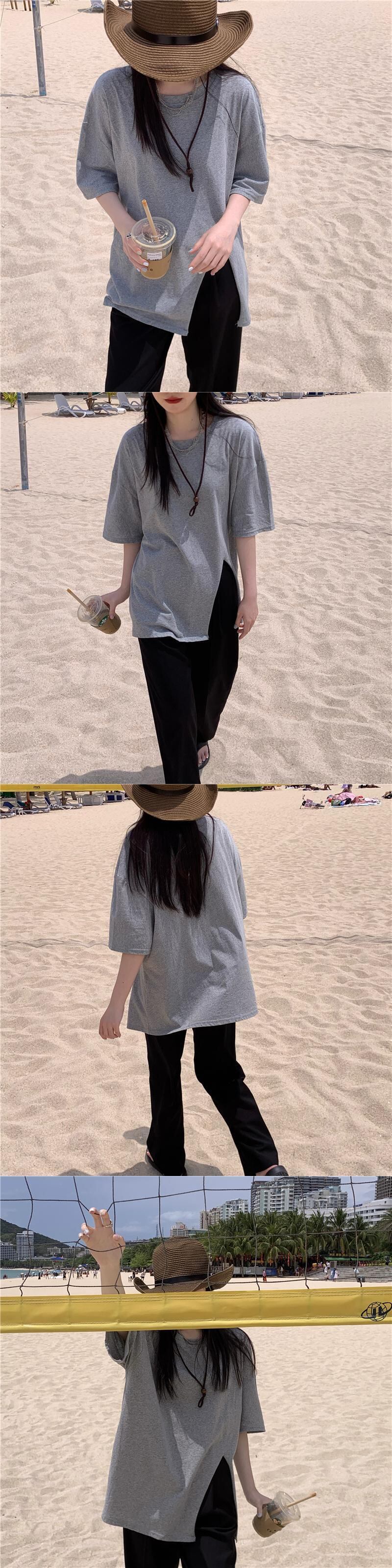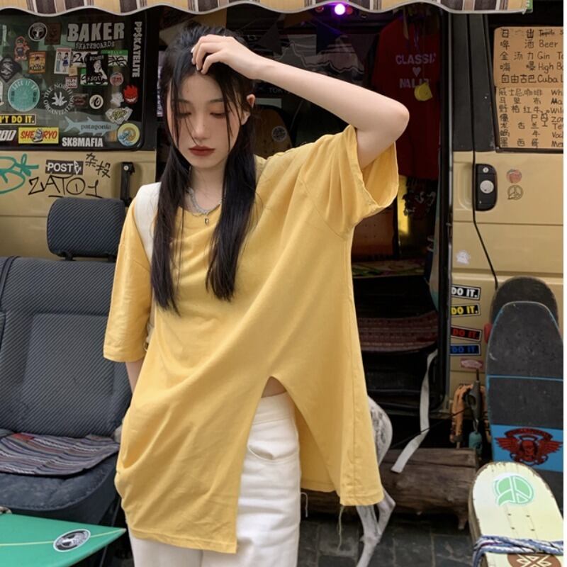 ロングスプリット半袖白Tシャツ女性インタイド半袖Tシャツ原宿風トップスで夏のゆったりとした怠惰な風 ホワイト かわいい サマー 夏物 TB2 TB237587782457
