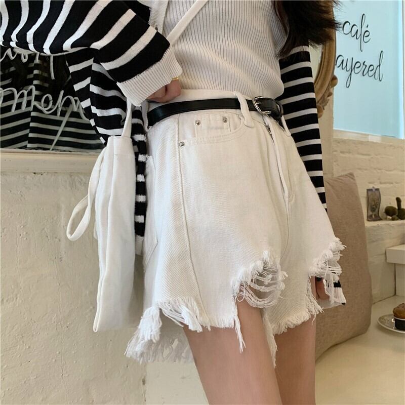 2021年の新しいハイウエストワイドレッグパンツルーズワイルドシンテルホワイト破れたジーンズショーツ女性の夏の潮 サマー 夏物 ブルマー TB2-6 TB2-669843954039