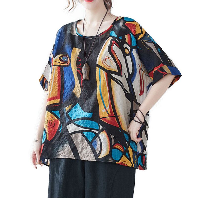 ファットmmラージサイズルーズで薄いニューエイジを減らすバットスリーブシャツレトロプリントコットンとリネンTシャツボトミングシャツ夏 大きめサイズ サマー 夏物 TB2-11 TB2-1176621027341