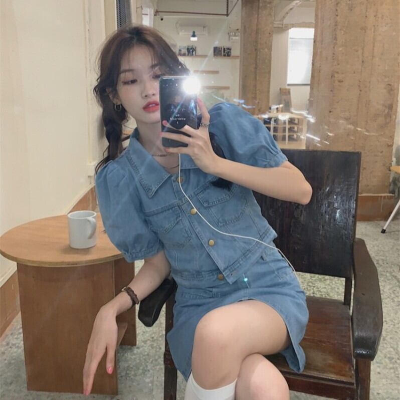 2021年ニューファッションウエスタンスタイルエイジリダクションツーピースサマーデニムスーツ女性パフスリーブショートシャツスカート 夏物 TB2-6 TB2-610127991953