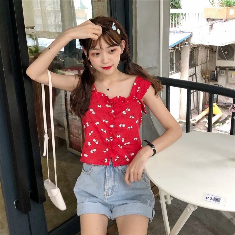 ミキジファストファッション婦人服〜甘くてキュートなフレッシュチェリー柄ショートキャミソール 大人ガーリー スウィート カジュアル TB2-6 TB2-651442171261