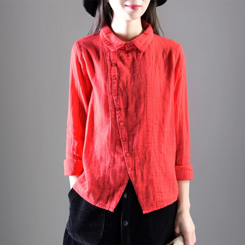 ルーズプラスサイズ春の新しい新鮮な文学的な二重層綿糸シャツレトロ斜め無地シャツボトミングシャツ女性 コットン 大きめサイズ スプリング 春物 ソリッドカラー TB2-11 TB2-1112955151227