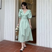 ミキジファストファッション婦人服〜夏フレンチデザインホルタープリーツレースVネックパフスリーブワンピースレディース サマー 夏物 TB2-6 TB2-628555400138