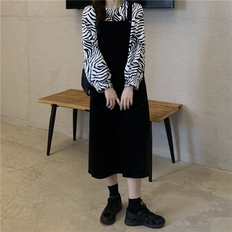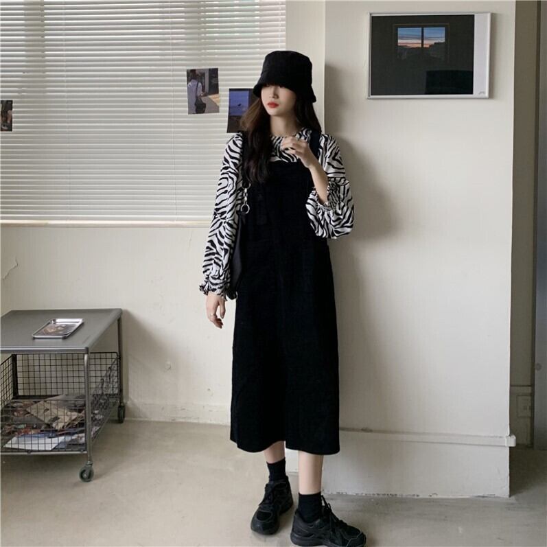 2021年秋新しい女性のスカート黒のストラップドレス気質バージョンルーズで薄い学生ミドルスカート ブラック オータム 秋物 TB2-6 TB2-636416969440
