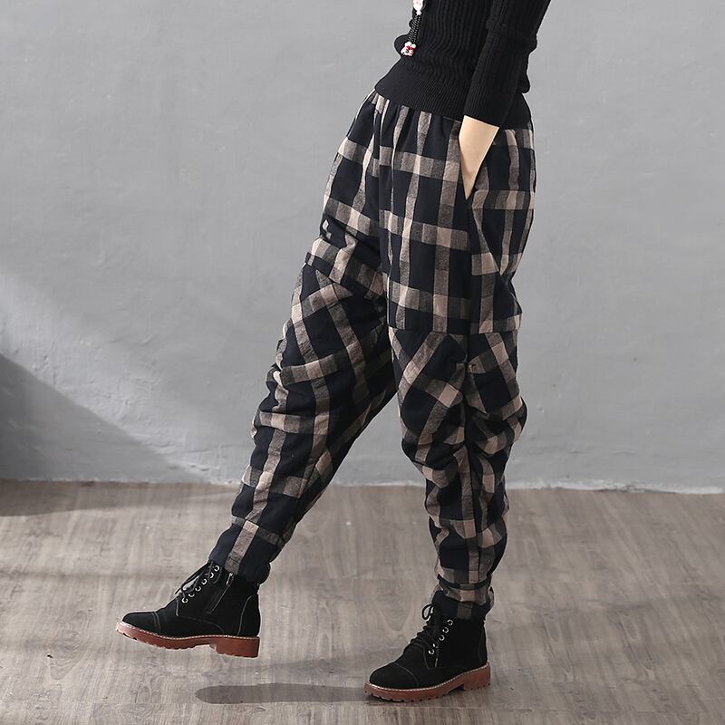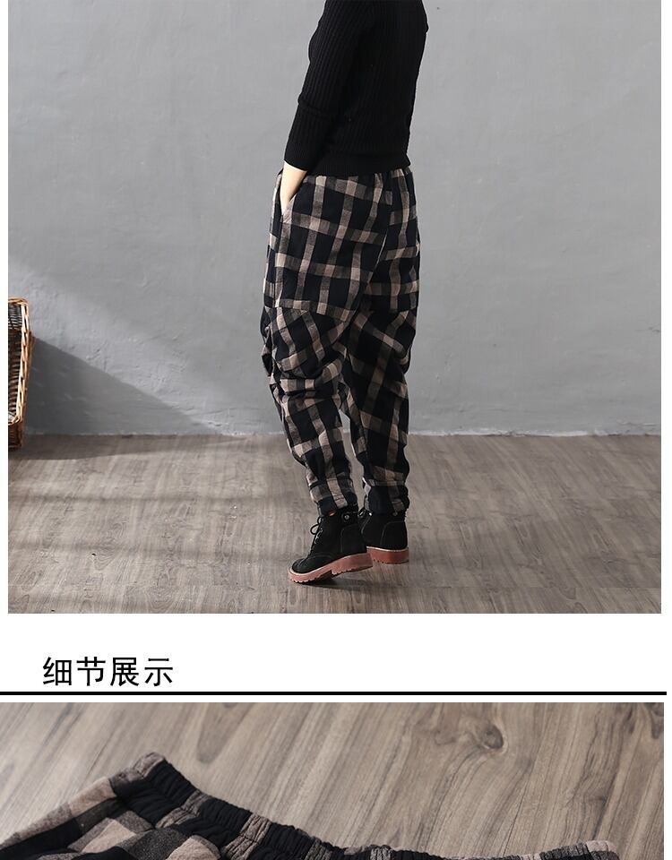 冬のチェック柄厚手のコットンリネンルーズプラスコットンバギーパンツ断熱しわコットンパンツレトロハーレムパンツキルティングパンツ女性 ウィンター 冬物 TB2-11 TB2-1192318593184