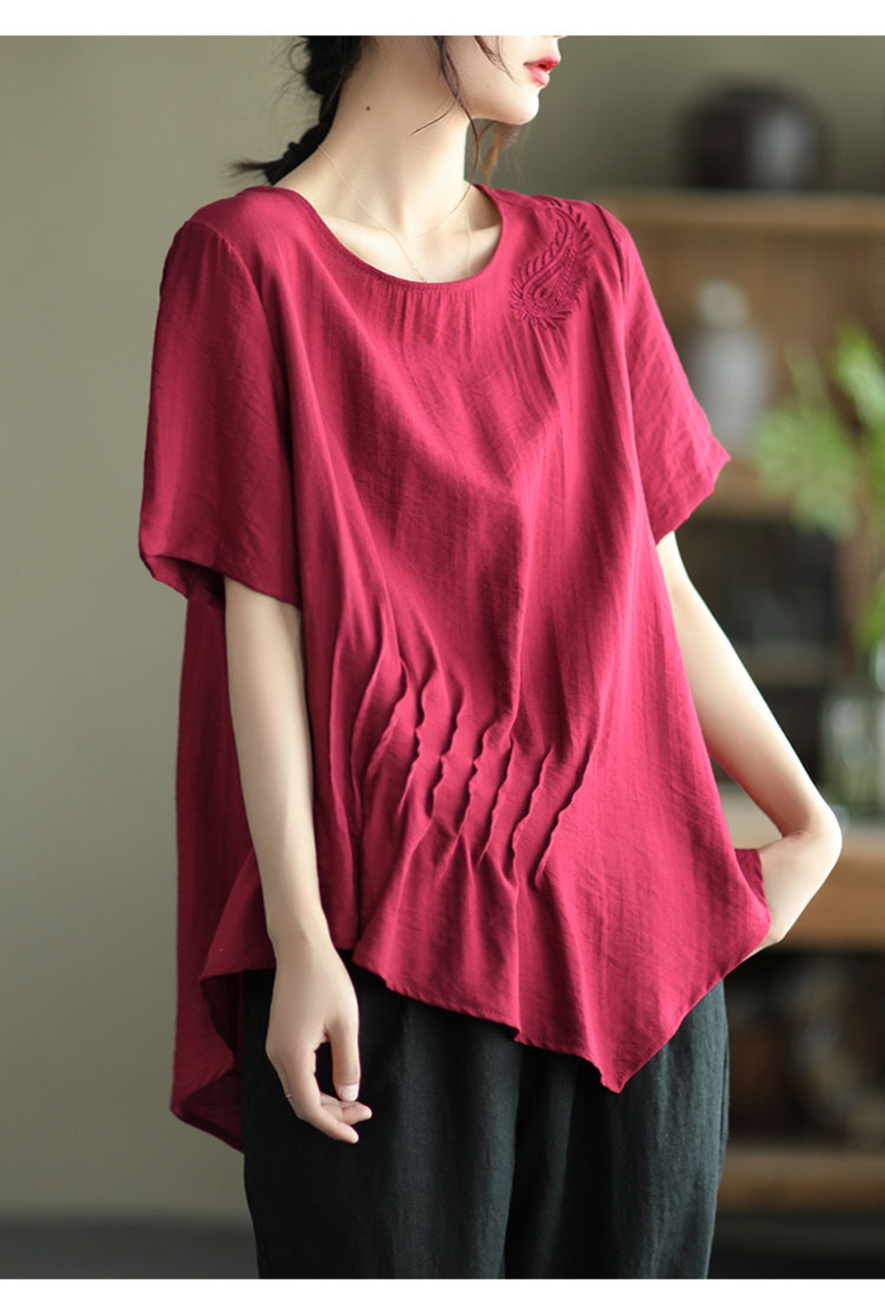 中年夏半袖Tシャツレディース2021夏バージョンルーズで薄いカバーミートミドル丈ボトミングシャツトップ サマー 夏物 TB2-11 TB2-111548000469