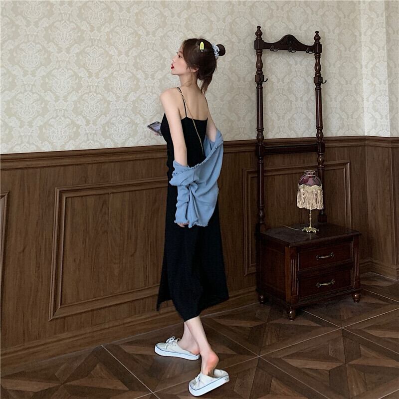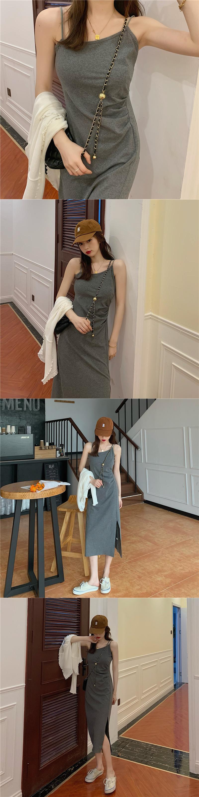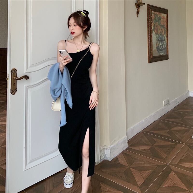 シーサイドホリデーセクシースプリットドレス女性2021年夏新しいスリムバッグヒップブラックサスペンダースカートロングスカート サマー 夏物 TB2 TB265492074960