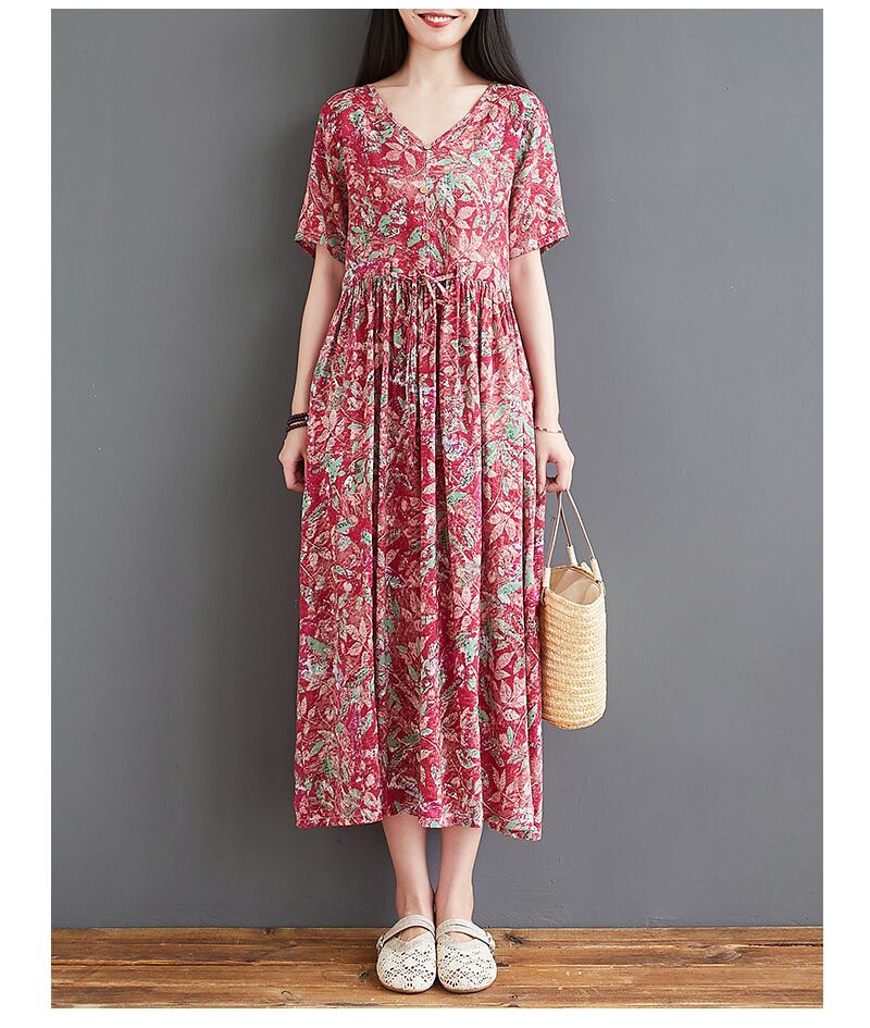 2021年新夏スモールフレッシュスモールフローラルエストラージサイズ女性レトロルーズドレスは細いVネックファットmm 大きめサイズ サマー 夏物 花柄 TB2-36 TB5-269828034674