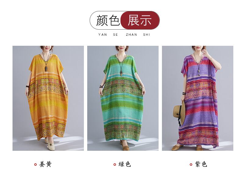 膝から足首までの太いmmルーズロングドレスカラーマッチングプリントストライプ夏の甘いロングドレスプラスサイズの太った女性 大きめサイズ 大人ガーリー スウィート キュート カジュアル サマー 夏物 TB2-36 TB5-277178449334