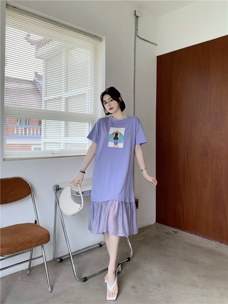 特大の女性の太ったmm夏の漫画のステッチミドル丈Tシャツスカート年齢を減らす怠惰なルーズドレス サマー 夏物 TB2-36 TB5-211044904949
