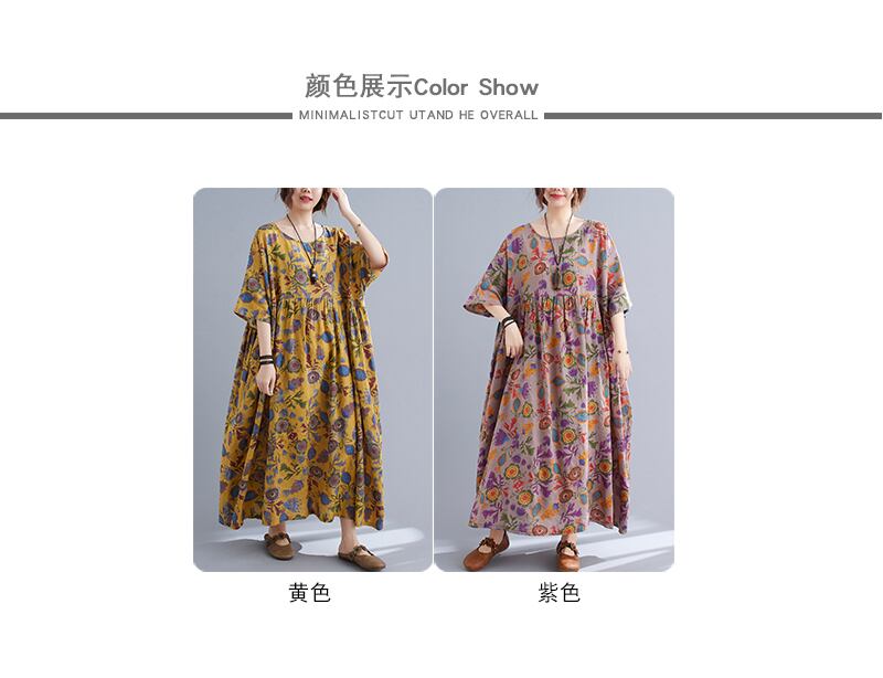 プラスファットプラスサイズラウンドネックファットmmロングスカートとアンクルAラインスカートカジュアルドレスサマー半袖レトロプリントスカート 大きめサイズ 夏物 Oネック TB2-36 TB5-282740307531