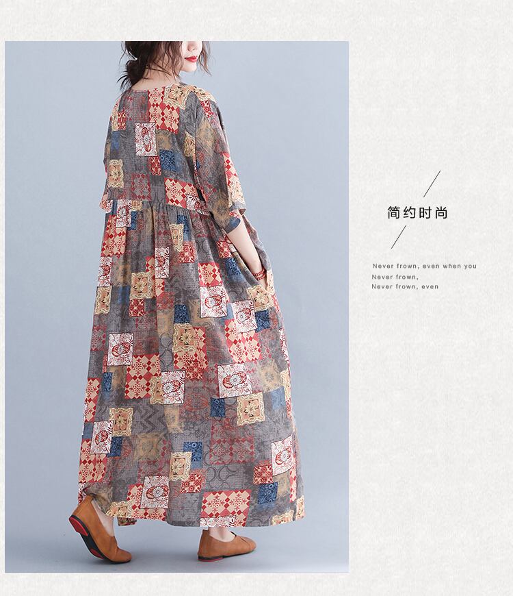200kgプラスサイズスリム膝丈ワンピース半袖ロングスカートラウンドネックファットmmサマープリントカジュアルレトロフェアリー 大きめサイズ 夏物 Oネック TB2-36 TB5-274797342152