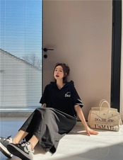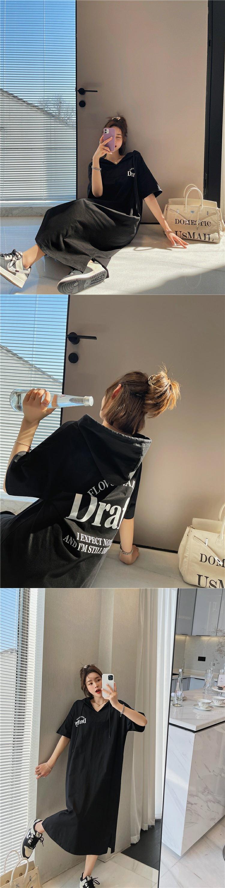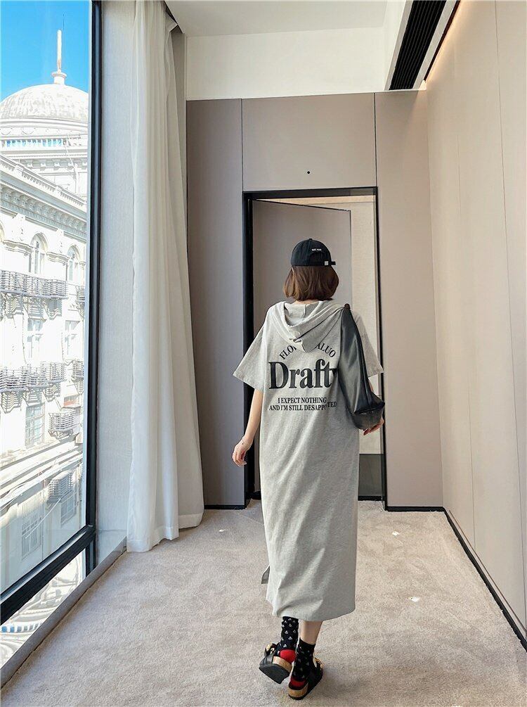 2021年の新しい夏のフード付きの文字は薄いミドル丈のTシャツスカート脂肪mmプラスサイズのチベットの肉のルーズドレスです 大きめサイズ サマー 夏物 TB2-36 TB5-286553588459