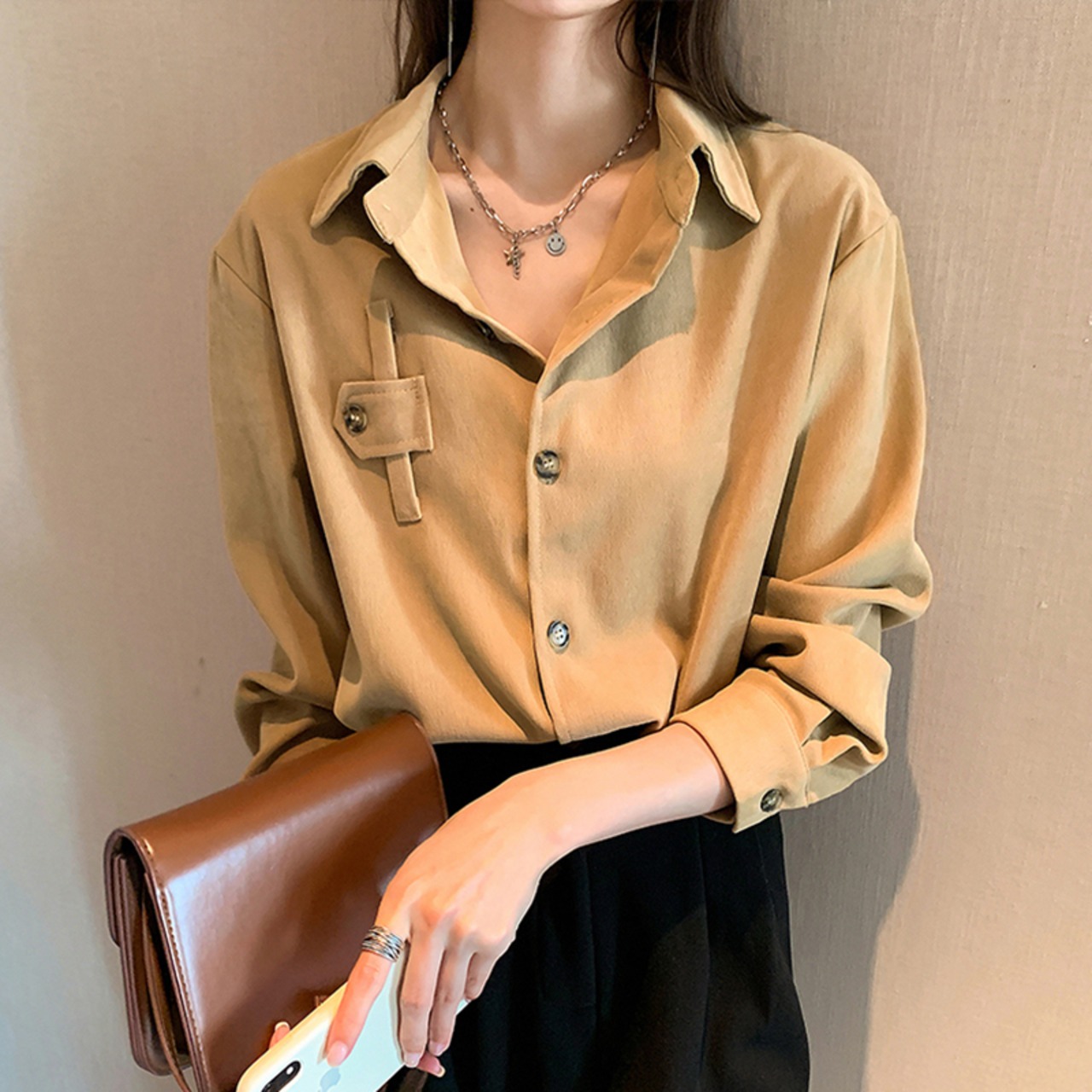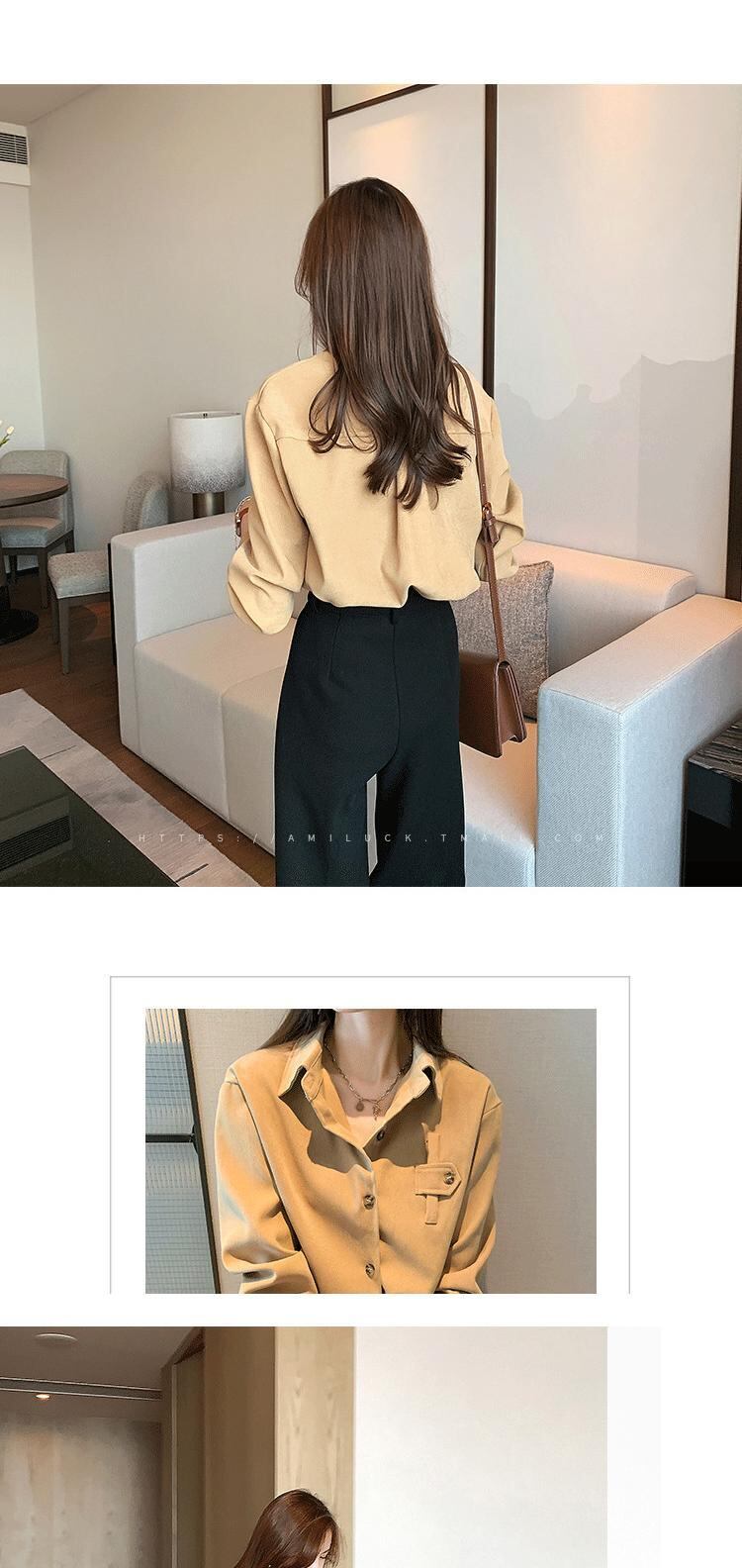 ブラッシュドホワイトシャツレディース秋冬レトロ香港フレーブルースデザインセンスニッチ多用途スタッキングボトミング長袖シャツ ロング オータム 秋物 ウィンター 冬物 TB2-15 TB2-1571770372791
