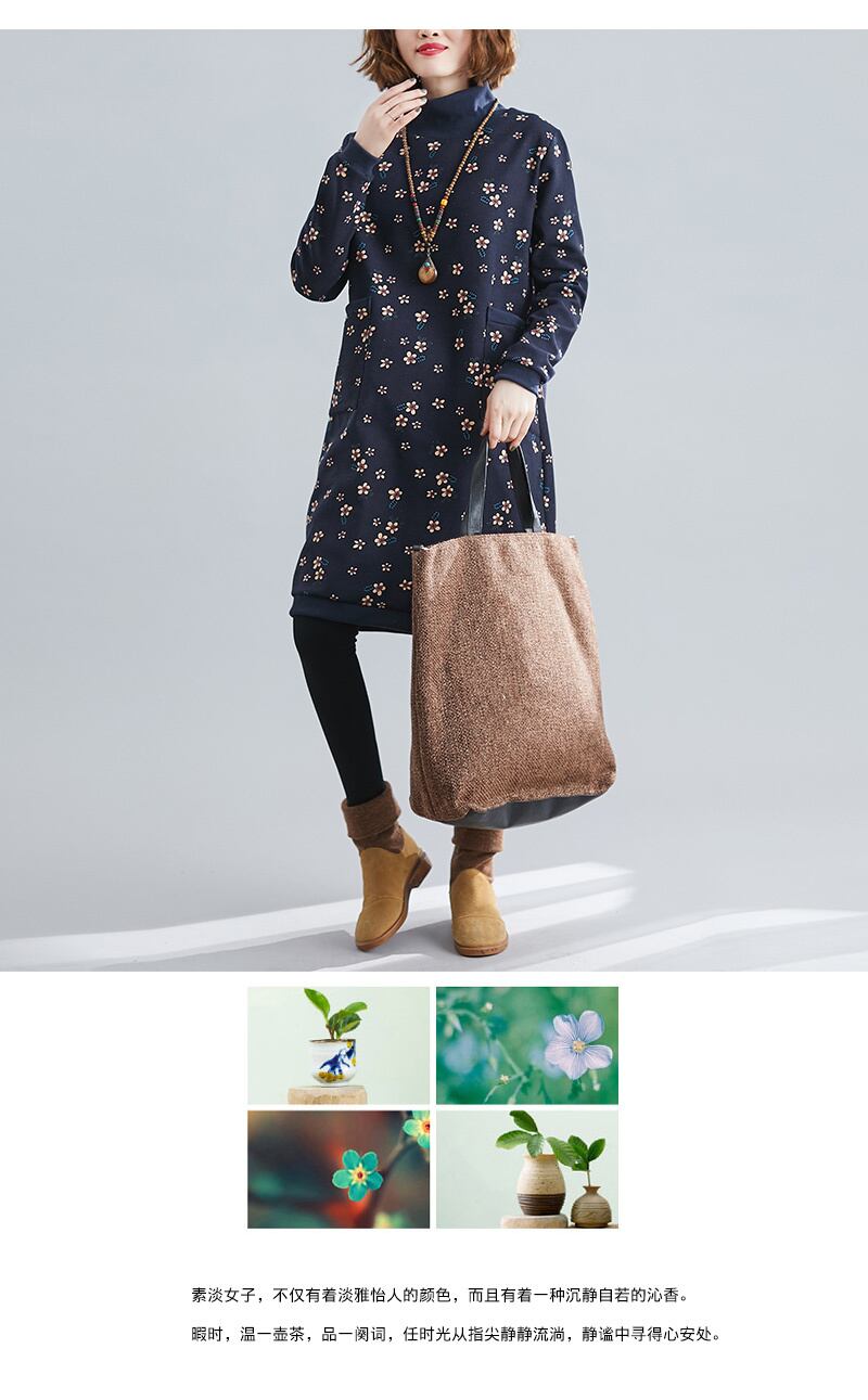 ラージサイズの冬の女性のファットmmエスニックスタイルレトロフローラルボトミングスカートミドル丈プラスベルベット厚手のハイネックドレス 大きめサイズ ウィンター 冬物 花柄 TB2-8 TB2-845148774789