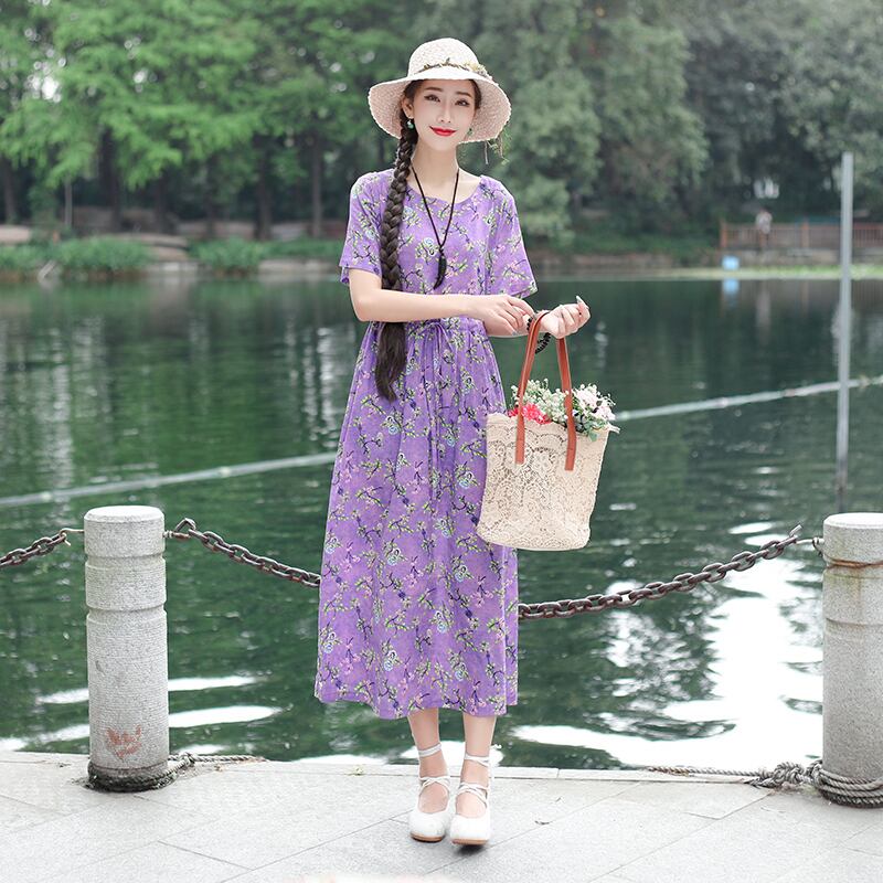 2021年の新しい夏の女性のエスニックスタイルのスカートルーズで薄い花柄のコットンとリネンのレトロなプリントの半袖ドレス サマー 夏物 TB2-12 TB2-1278766197408