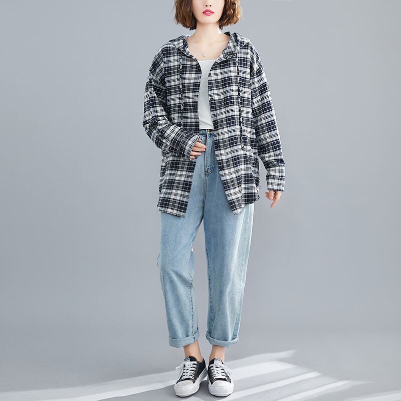 フード付きシャツレディース長袖2020新バージョンルーズプラスサイズシャツ学生オールマッチ春秋チェック柄ジャケットトレンド ロング 大きめサイズ スプリング 春物 オータム 秋物 TB2-8 TB2-813008635839