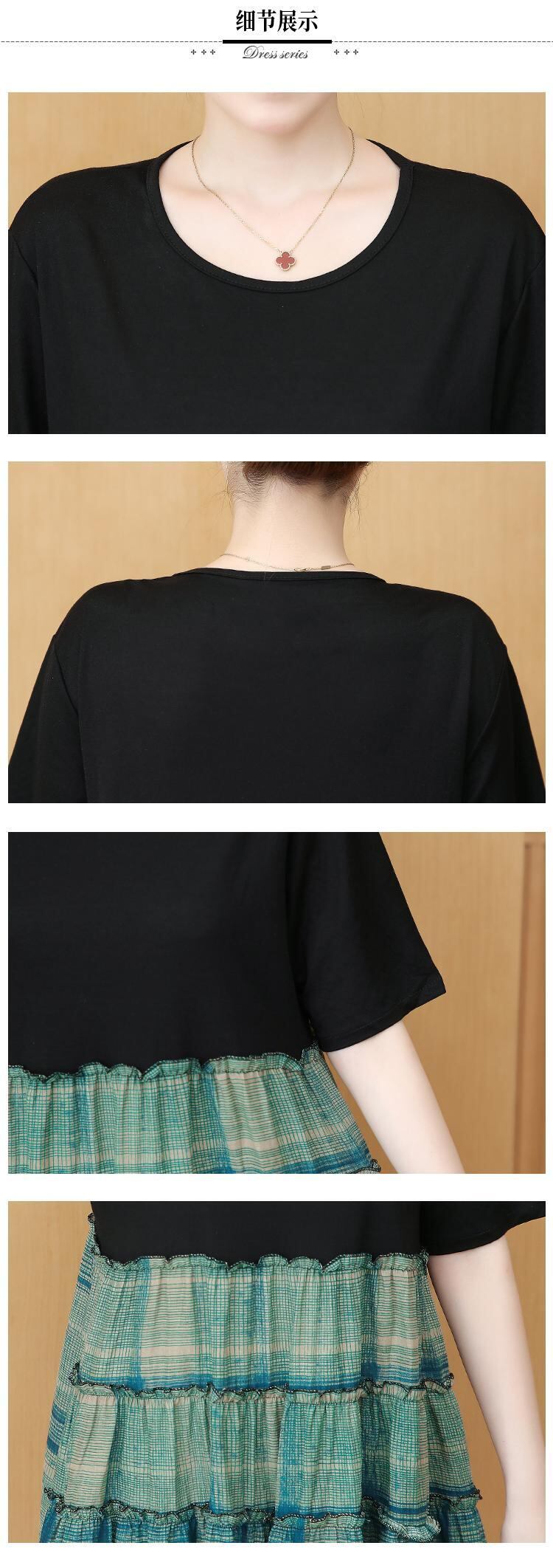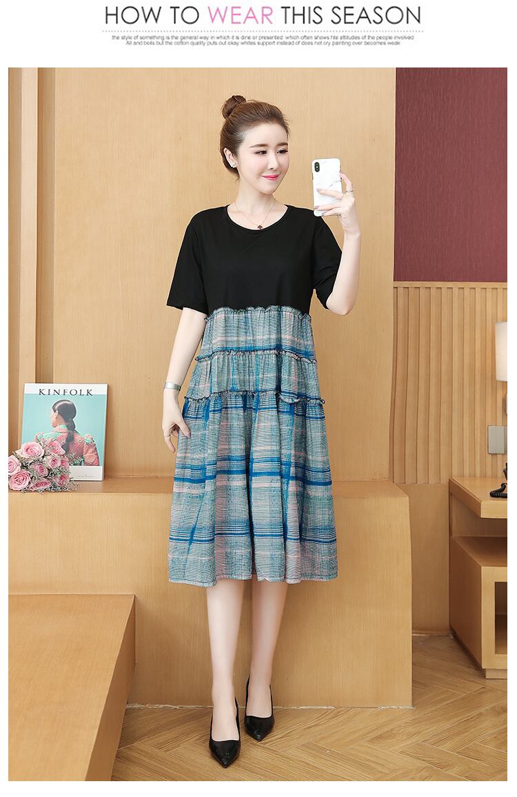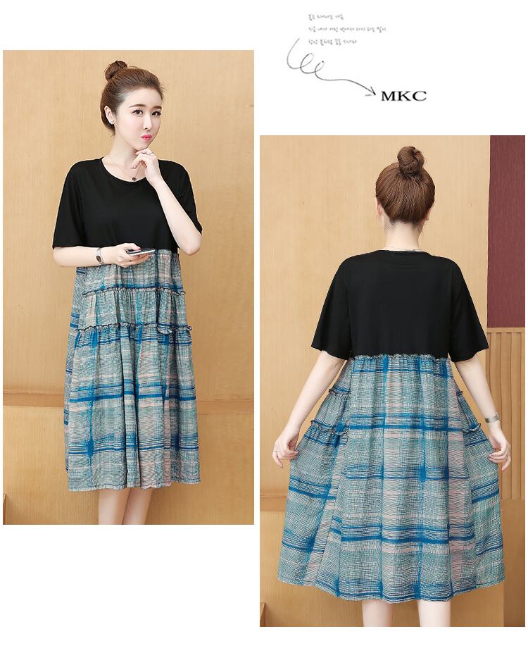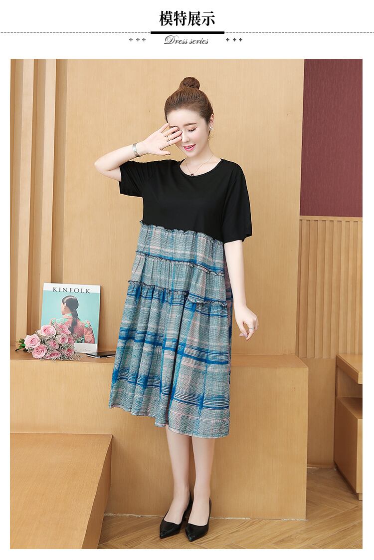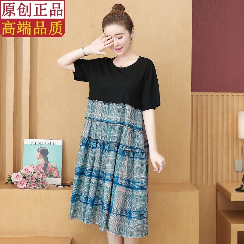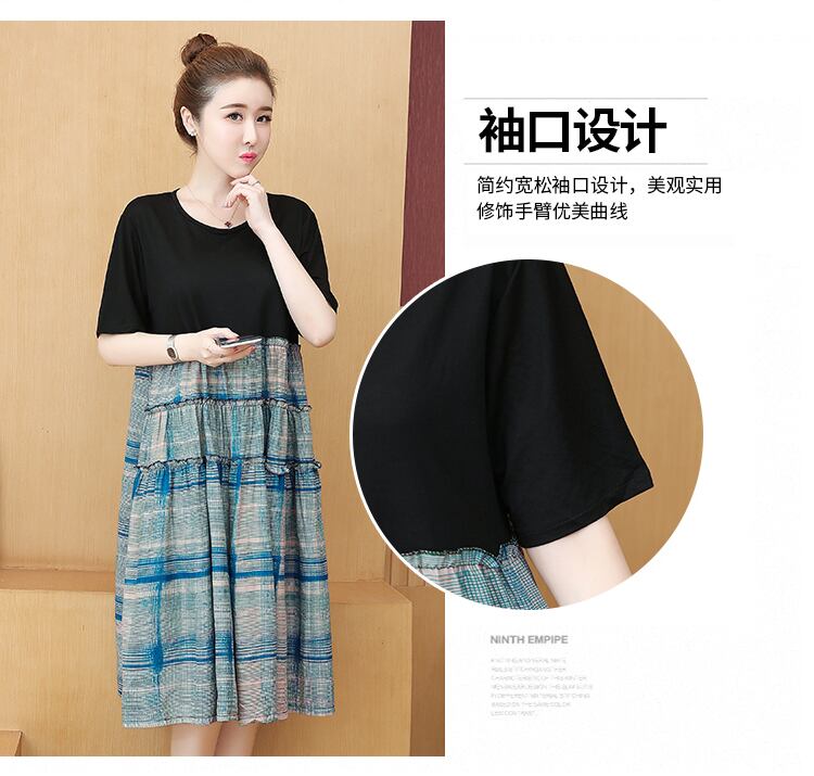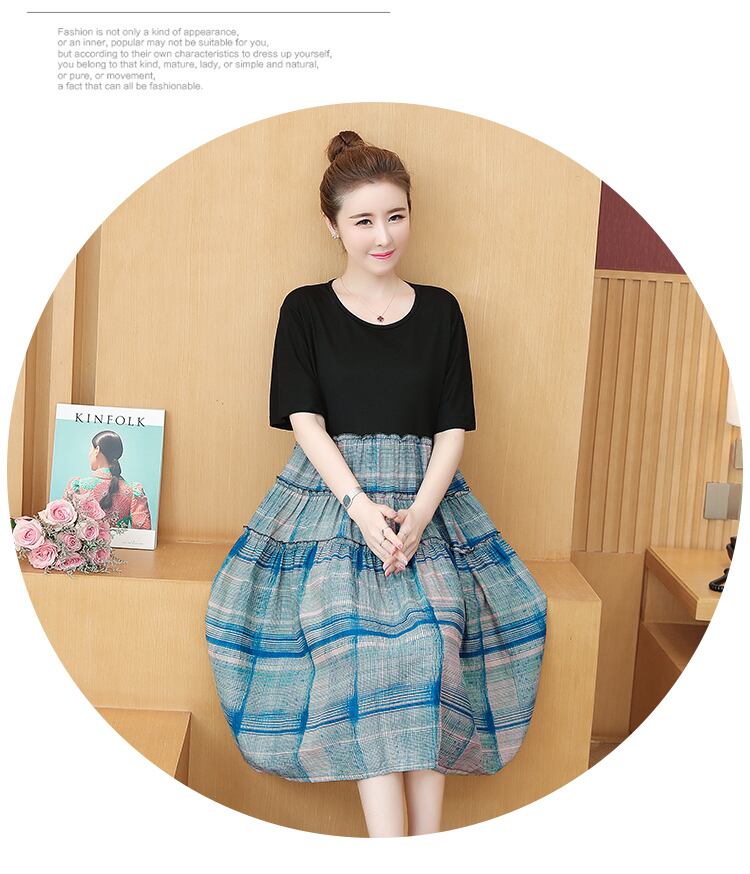 サマードレスウエスタンスタイルラージサイズドレス女性脂肪mm200kgルーズチベット肉年齢削減レトロチェック柄ステッチミドル丈スカート 大きめサイズ 夏物 TB2-12 TB2-1210310175598