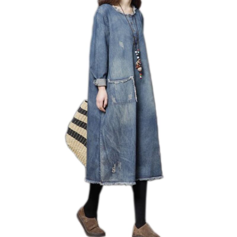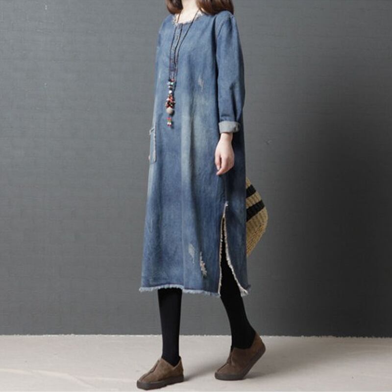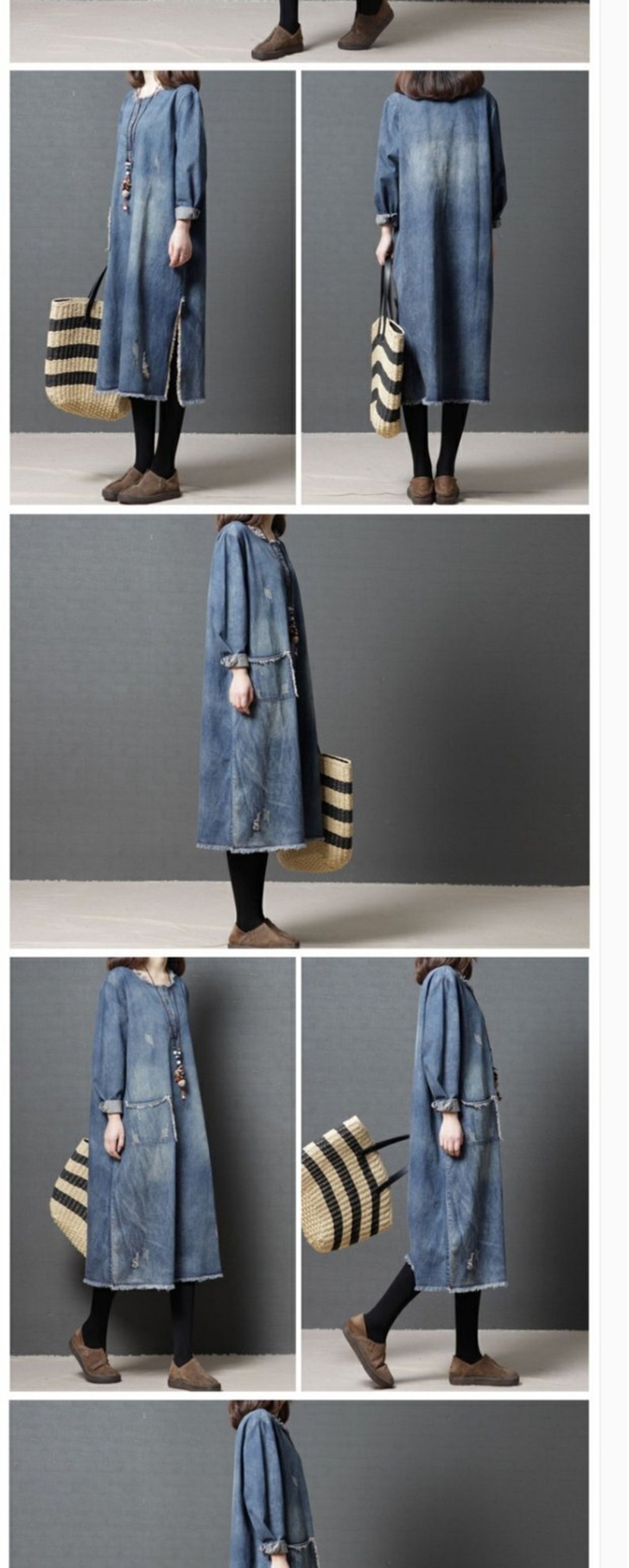秋冬新作ルーズラージサイズミドル丈ラウンドネックデニムワンピース女性チベット肉が薄くベースAラインスカート 大きめサイズ オータム 秋物 ウィンター 冬物 Oネック TB2-8 TB2-88089424596