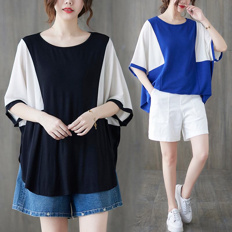 2021年夏の新しいトップ200kg脂肪MMルーズワイルドファッションヒットカラーバットスリーブ薄い半袖Tシャツ女性 ショート ハーフスリーブ サマー 夏物 TB2-12 TB2-1216161683987