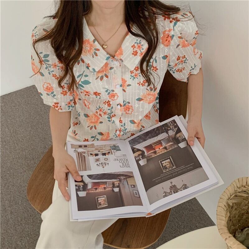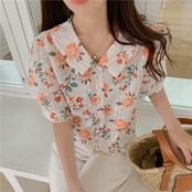 Sanmuziファストファッション婦人服〜新しい夏の年齢削減刺繡プリントレトロな小さな襟薄い半袖シャツ 刺繍 サマー 夏物 TB2-6 TB2-641654908229