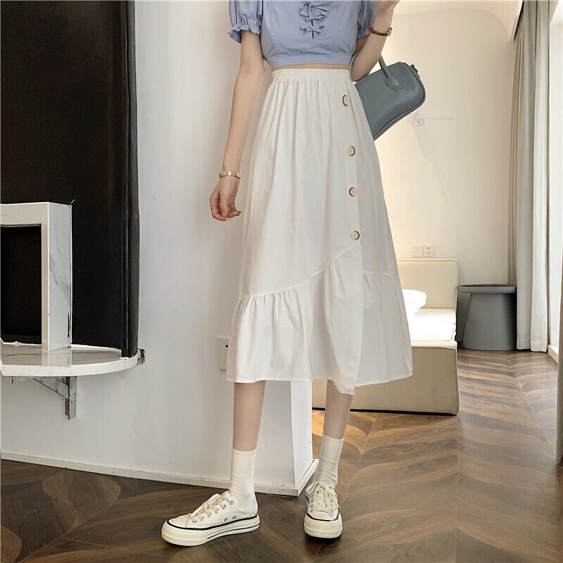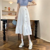 サンムジファストファッション婦人服〜夏のデザイン感覚のボタンステッチワイルドハイウエスト細いAラインスカート ハイウェスト サマー 夏物 TB2-6 TB2-689284859757
