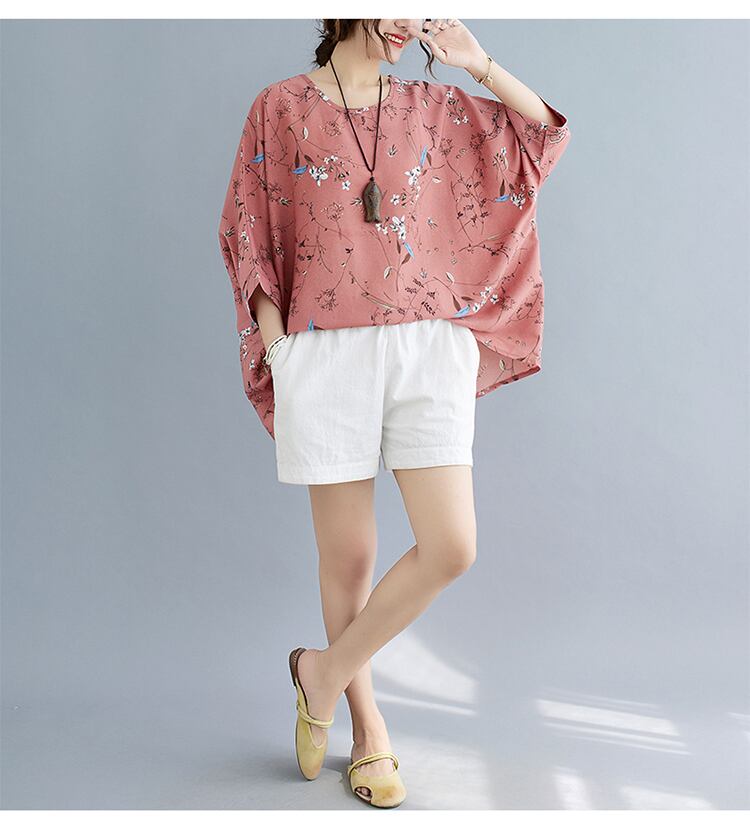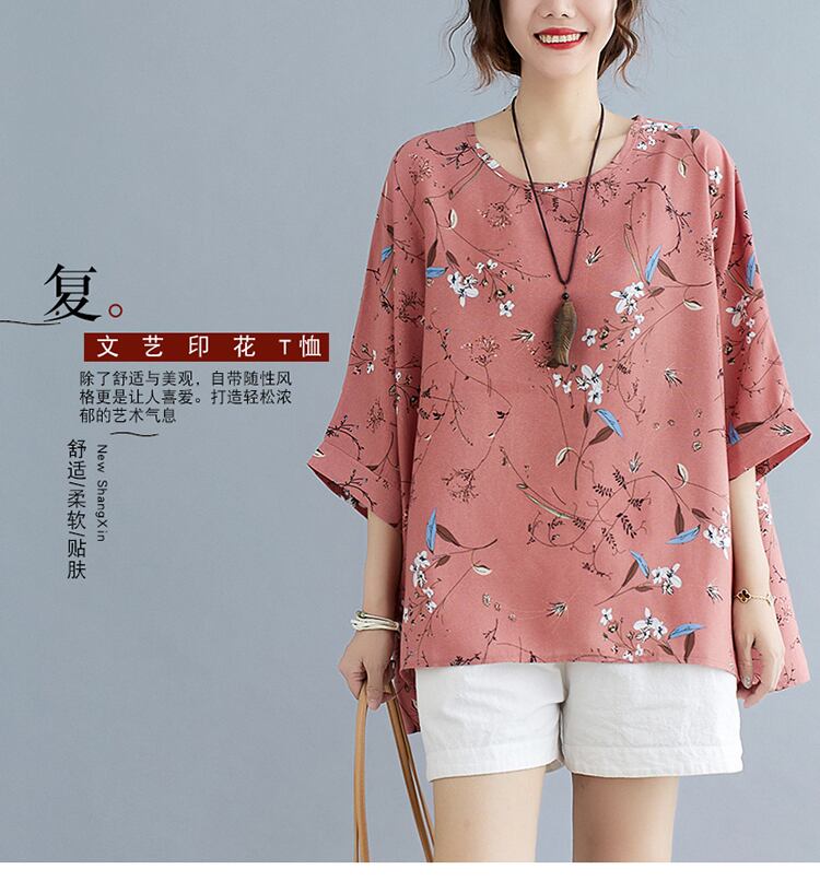 2021プラスサイズの女性の半袖文学ファン脂肪MMオールマッチ薄いルーズトップ気質ラウンドネックシフォンシャツ女性 大きめサイズ Oネック TB2-12 TB2-1263772186235