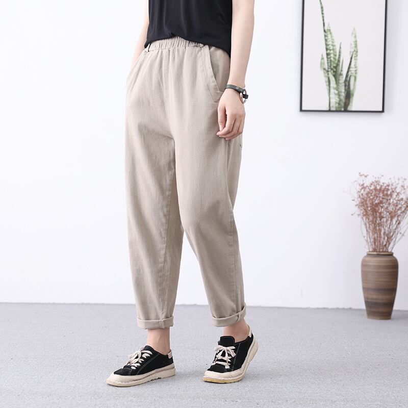 2021年夏のニュースタイルオールマッチカジュアルコットンパンツルーズで薄い無地の伸縮性ウエストハーレムパンツレディースパンツ エラスティック サマー 夏物 ソリッドカラー TB2-9 TB2-981674547949